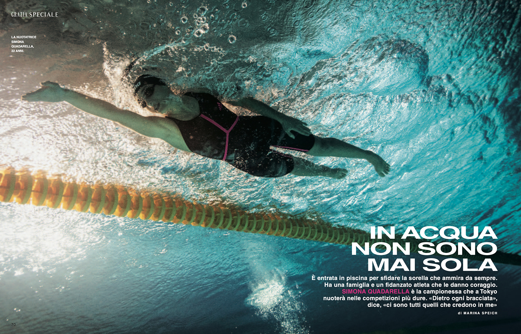 Atleta di punta del nuoto italiano nelle gare di mezzofondo, campionessa mondiale in carica degli 800 e dei 1500 metri ai Mondiali di Doha 2024, medaglia di bronzo olimpica negli 800 metri di Tokyo 2020. In carriera, Simona Quadarella ha vinto 9 medaglie mondiali (di cui 3 ori) e 11 titoli europei tra vasca lunga e vasca corta, campionessa in carica degli 800 e dei 1500 metri di Roma 2022 e dei 400 stile libero in vasca corta a Otopeni 2023.