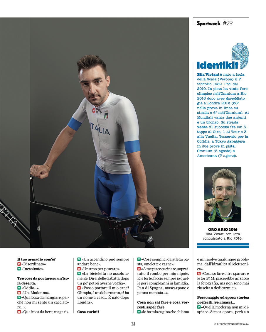 A leader in track cycling, where he kicked off Italy's glory, Olympic Omnium champion at Rio 2016 and tow-time Elimination world champion with eight European titles in the velodromes, winner of the 2018 Italian National Road Race Championships and the 2019 European Championships, of five stages of the Giro d 'Italia, three in the Vuelta de España, and one in the Tour de France, Elia Viviani is one of the most decorated Italian road and track racers in modern cycling history.